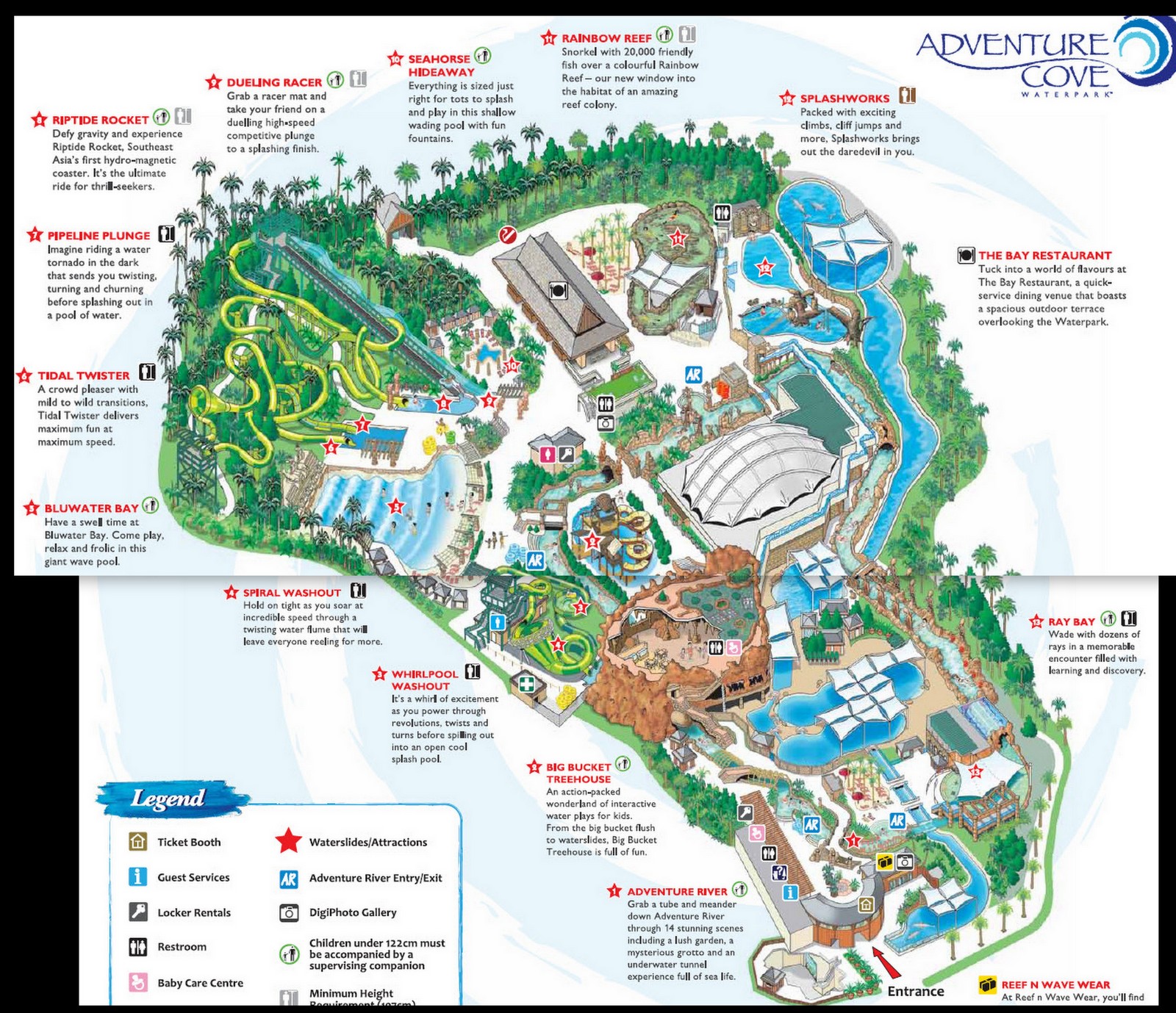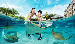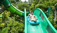 At Adventure Cove Waterpark, you can take high-speed water slides, laze the day away drifting on a lazy river, snorkel with 20,000 tropical fish over a colourful reef, wade among rays and even come face to face with sharks! Come have fun today! Where the water's full of life."